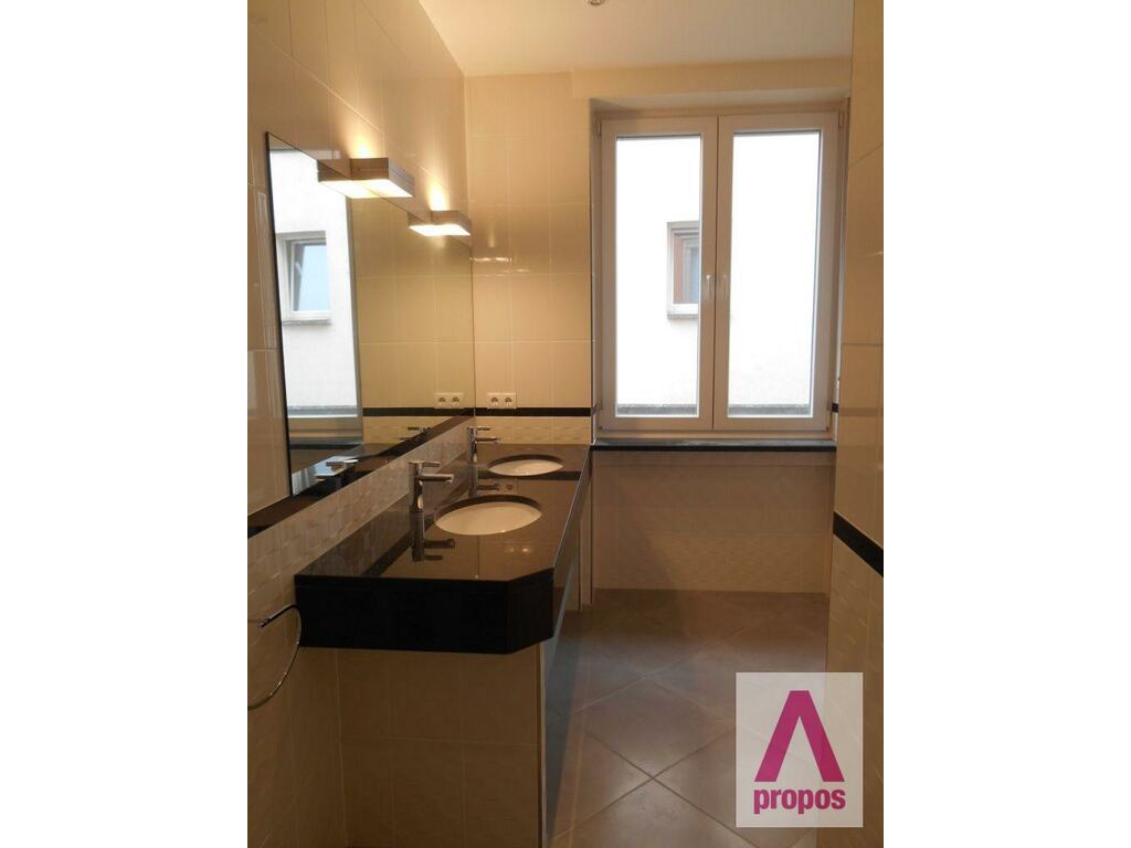 APPARTEMENT REPRESENTATIF A LOUER, rue Jean-Pierre Brasseur, Luxembourg-Belair Cet appartement élégant et de haut standing de ±150 m² à louer, situé au 1er étage (avec ascenseur) d'un immeuble à 4 unités à la rue Jean-Pierre Brasseur à Luxembourg-Belair, l'appartement à caractère mélange modernité et charme de l'ancien immeuble, hauts plafonds et finitions haut de gamme et sobres, première adresse, située à 10 minutes à pied du centre-ville, situation tranquille à proximité du Parc Municipale, proche de tous commerces (super-marchés Cactus, Delhaize et Lidl ouverts dimanche matin, boucherie BIO, boulangerie …) et de restaurants (italien, thaïlandais, chinois, brasserie française …), terrains de tennis « les Arquebusiers » à proximité, proche du Campus Geesseknaeppchen (ISL), du Centre Hospitalier (CHL), 5 minutes à pied de l'arrêt Etoile pour le tram, bonnes connexion de bus, accès facile aux autoroutes. loyer : 3.750.- EUR charges : 375.- EUR, jouissance : août 2021 passeport énergétique : en cours L'appartement comprend un hall d'entrée spacieux, séjour avec poêle scandinave, cuisine équipée ouverte vers le séjour, 3 chambres à coucher dont une chambre avec ensuite salle de bains avec baignoire, 2 lavabos, fenêtre et WC séparé, 2e salle de bains avec baignoire, 2 lavabos et WC, WC séparé, sol: parquet, balcon, buanderie commune, cave, emplacement parking intérieur. Équipement sol : parquet Localisation Luxembourg-Centre Voiture : 4 min (1,1 km) Vélo : 4 min (850 m) Luxembourg-Gare Voiture : 12 min (3,2 km) Vélo : 11 min (2,6 km) Luxembourg-Kirchberg Voiture : 9 min (3,7 km) Vélo : 11 min (3,6 km) Luxembourg-Cloche d'Or Voiture : 15 min (5,3 km) Vélo : 16 min (4 km) Aéroport-Findel Voiture : 16 min (10,2 km) Vélo : 25 min (9,2 km) Mobilité Bus vers Luxembourg-Centre : 13, Tram 1, Bus vers Luxembourg-Gare : Tram 1 Bus vers Luxembourg-Kirchberg : T1 Bus vers Luxembourg-Cloche d'Or : T1, 16 Bus vers Senningerberg : 248, 16, 6 Bus vers Aéroport-Findel : 248, 16, 6 Voir également le site internet de la Mobilitéitszentral. Pour de plus amples renseignements, veuillez contacter l'agence " A Propos Immobilier " : T. +352 26 38 37 48 / E. info@apropos.lu