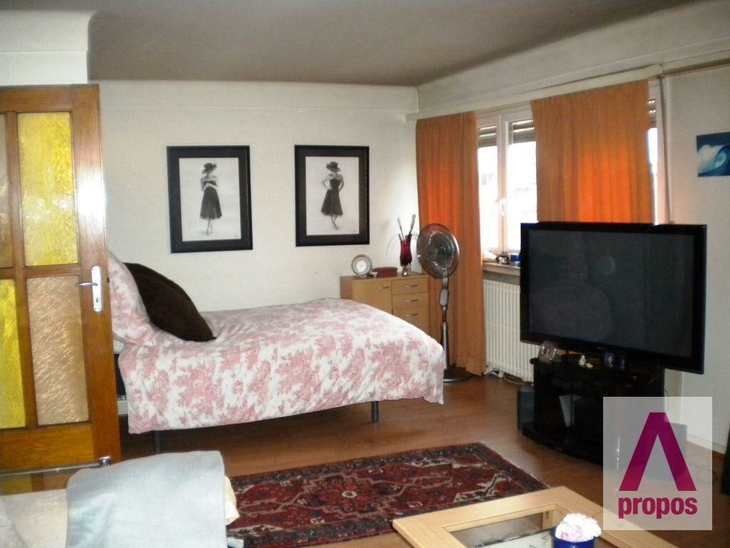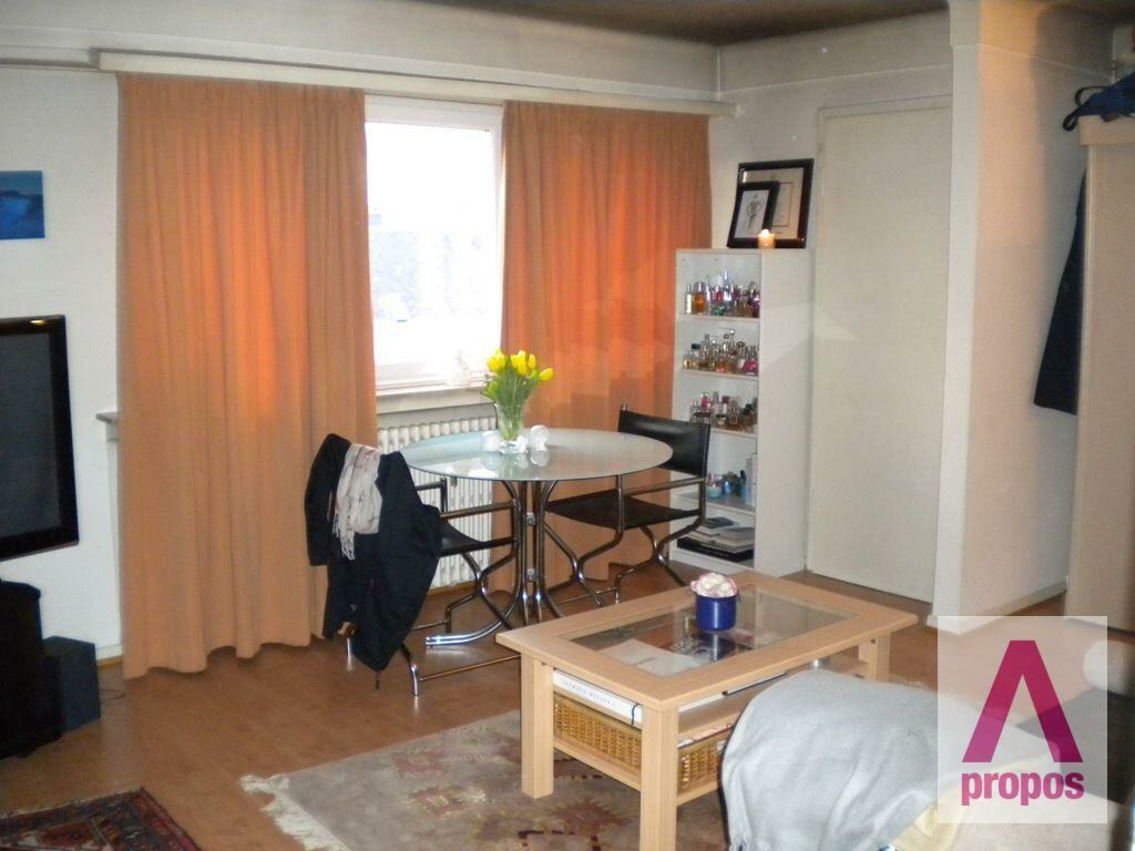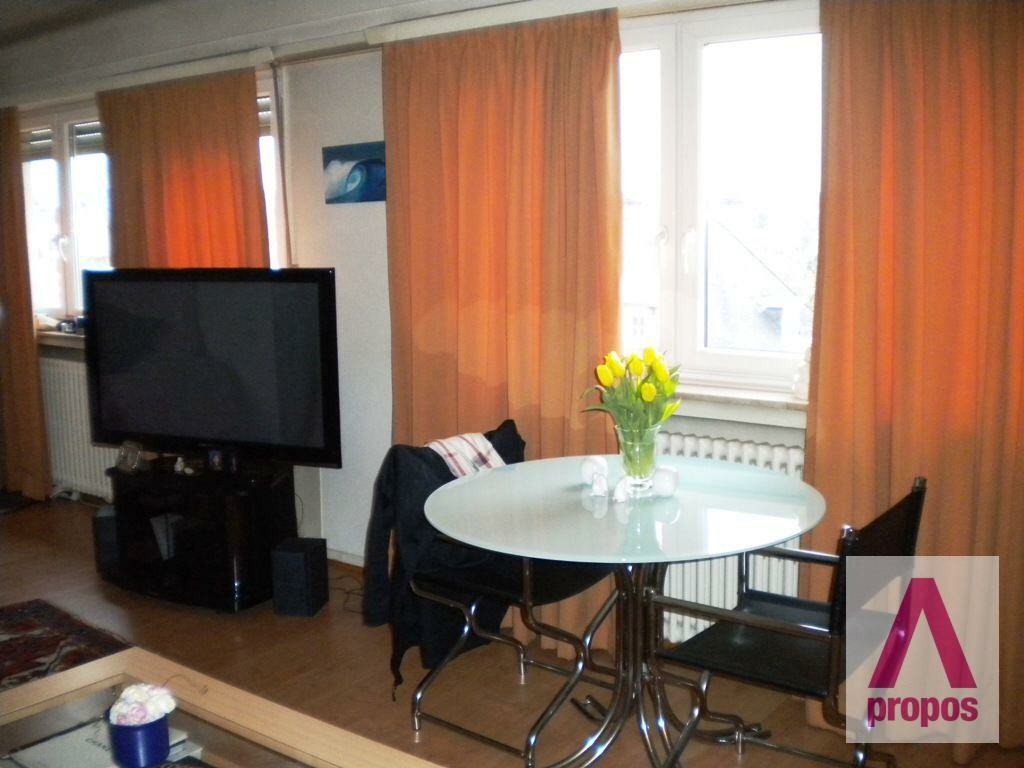 Hall d'entrée, séjour avec placard encastré, cuisine équipée séparée, nouvelle salle de bains avec douche, sol : parquet laminé, buanderie commune, cave commune, jardin en commun exposé sud, charmant studio de ± 40 m², dernier étage, lumineux, rénové tout en gardant le charme des années 1950, excellente situation à 15 minutes à pied du centre ville, proche du Campus Geesseknaeppchen, accès facile aux autoroutes, commerces à proximité, bonnes connexion de bus, charges : 150 EUR, libre : mi-octobre 2021